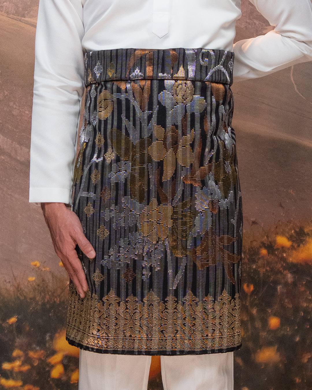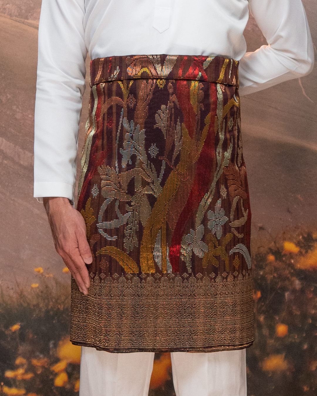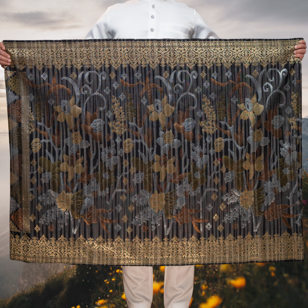 Draped in exclusivity, our Songket Davinci Sampin is a masterpiece handwoven with the utmost precision using ultra-fine threads. Each piece is a unique work of art, mirroring the timeless allure of the Sampin Terengganu series. Limited to one piece per design, taking a month to craft. Elevate your moments with unparalleled elegance.
