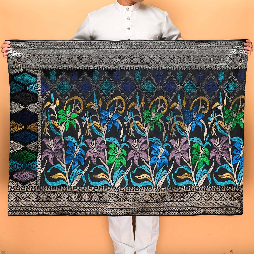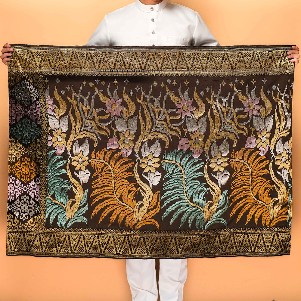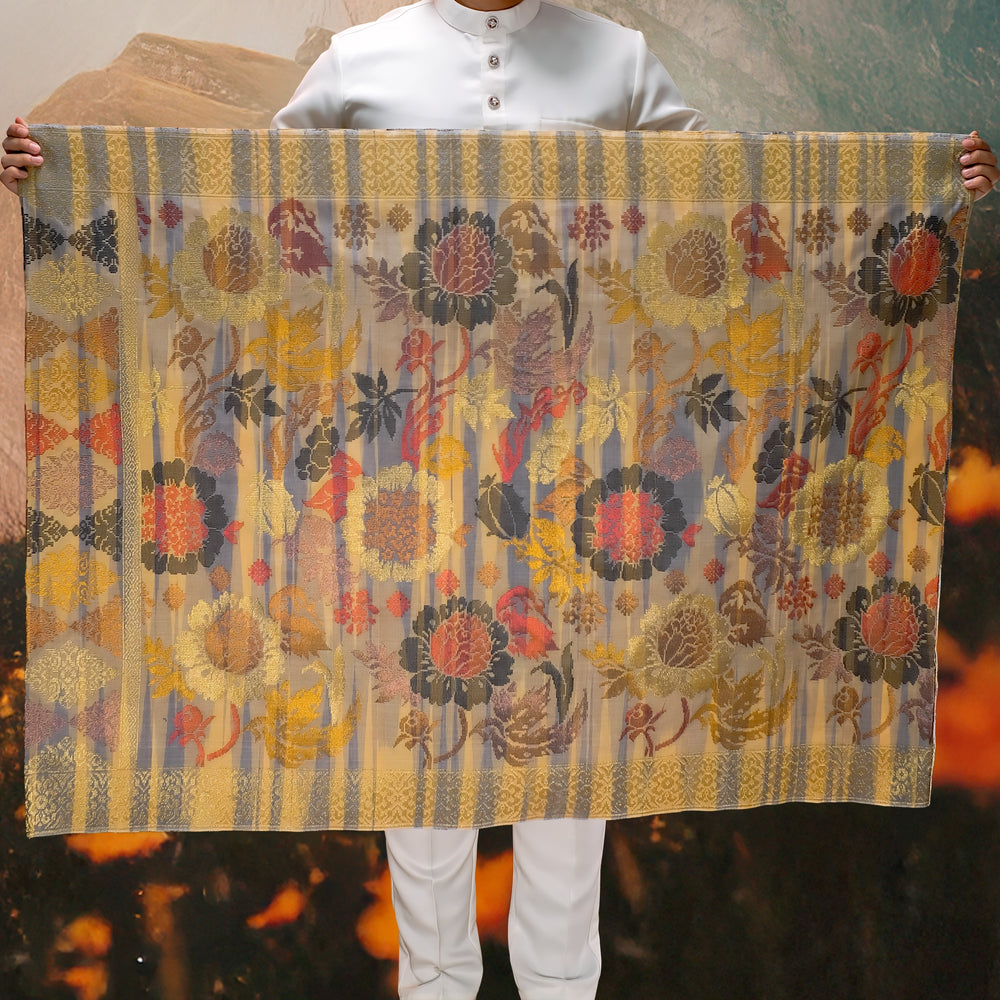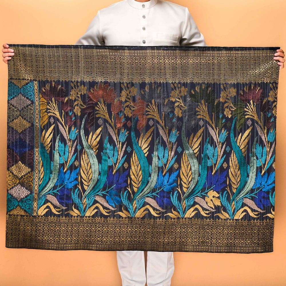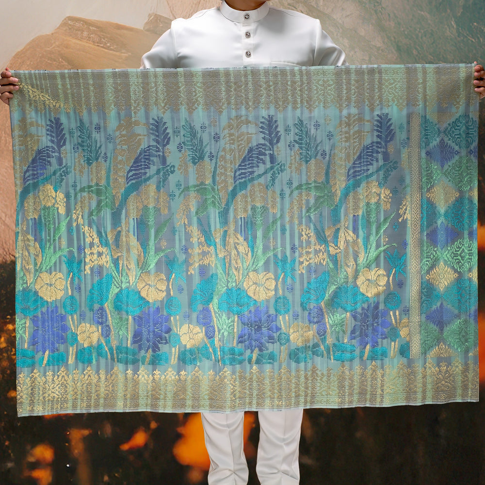 Draped in exclusivity, our Songket Davinci Sampin is a masterpiece handwoven with the utmost precision using ultra-fine threads. Each piece is a unique work of art, mirroring the timeless allure of the Sampin Terengganu series. Limited to one piece per design, taking a month to craft. Elevate your moments with unparalleled elegance.