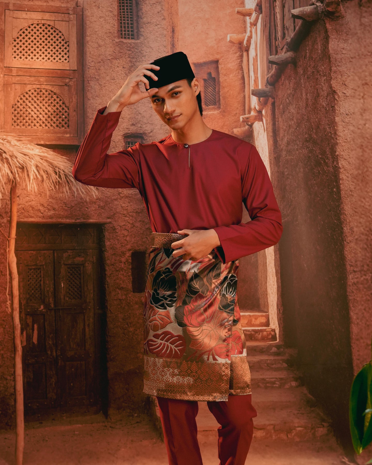 Leka Pantai Instant Sampin Adult - Maroon & Gold