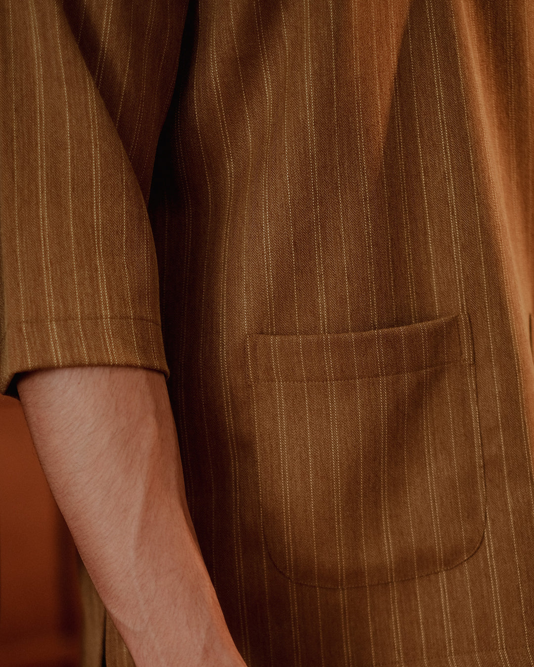 Kurta Jalin, simple yet full of character. Crafted from premium soft material with fine line textures, cool and comfortable all day long. Relaxed fit with a front pocket, ¾ sleeves, round neck collar, and side slits. Unisex, easy to wear, and totally iron-free.
