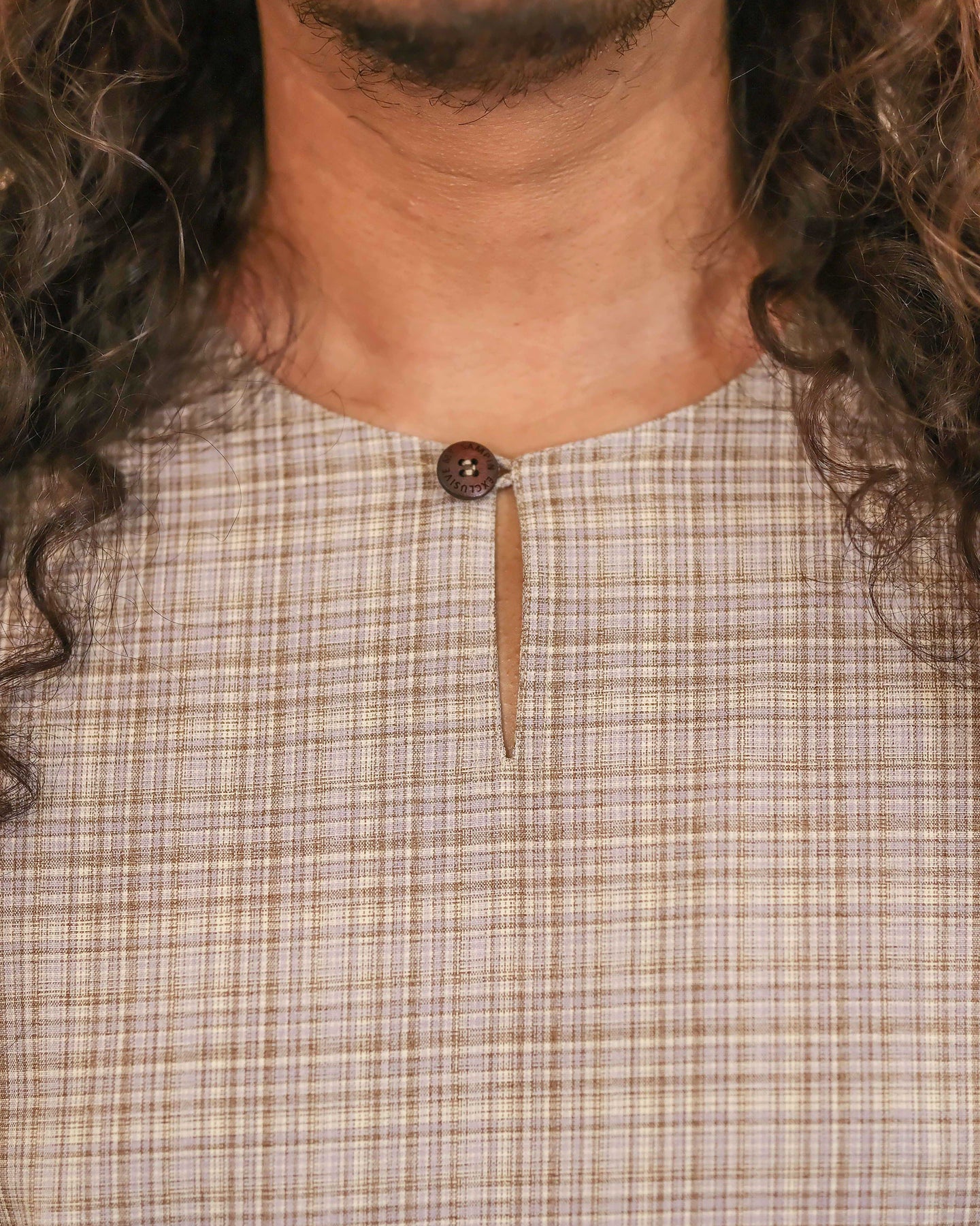 Meet Kurta Tera, a classic with a retro twist. Made from premium soft fabric with a subtle square texture, lightweight and completely iron-free. Relaxed fit with two front pockets, long sleeves, round neck collar, and side slits. Unisex and perfect for both casual days and formal occasions.