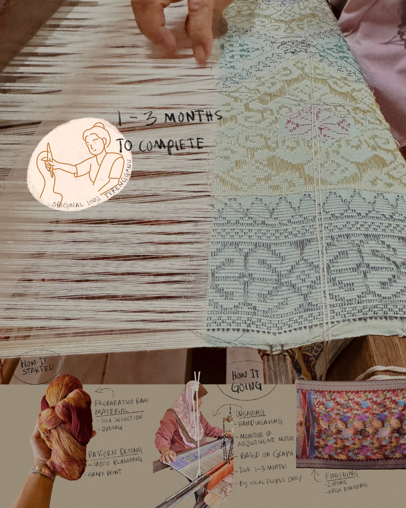 Our Sampin Sutera Terengganu takes 1-3 months to complete, ensuring exquisite craftsmanship for every piece.